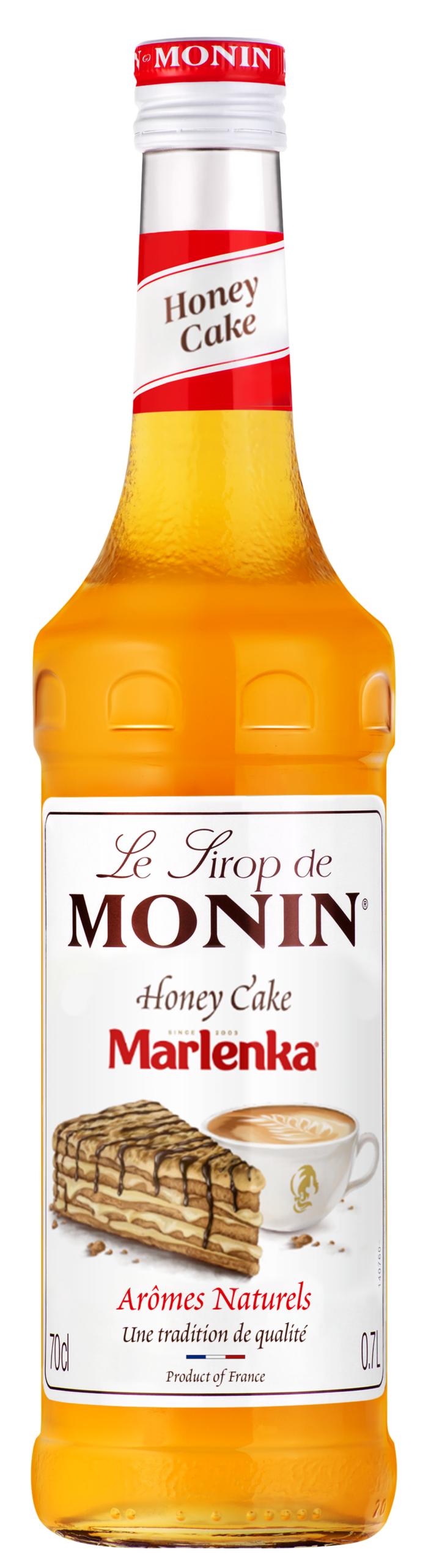 MONIN MARLENKA® je ochucený sirup inspirovaný ikonickým medovým dortem MARLENKA®, který vznikl ve spolupráci s výrobcem této známé speciality. Chuť tvoří med, jemný karamel a lehké oříškové tóny. Sirup byl vytvořený speciálně pro kávové nápoje a skvěle funguje v latté, cappuccinu a dezertních kávových speciálech. Díky své plné a hřejivé chuti se výborně hodí také do milkshaků a dalších sladkých nápojů. Podklady výslovně uvádějí jeho vhodnost i pro párování s dortem Marlenka.